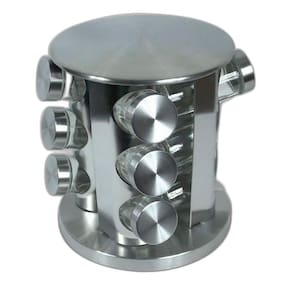 - 12 potes de vidro com tampas herméticas para manter os temperos frescos por mais tempo. - Base giratória 360 em aço inox, proporcionando fácil acesso e economia de espaço. - Design compacto e elegante, ideal para qualquer estilo de cozinha. - Material resistente e durável, garantindo longa vida útil ao produto. - Dimensões: 19 x 19 x 24 - Medidas Frascos: Altura 9,5cm x Diâmetro 4cm