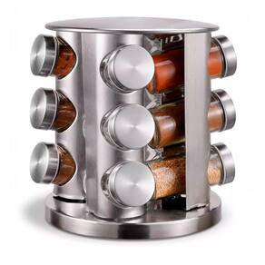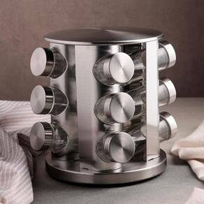 - 12 potes de vidro com tampas herméticas para manter os temperos frescos por mais tempo. - Base giratória 360 em aço inox, proporcionando fácil acesso e economia de espaço. - Design compacto e elegante, ideal para qualquer estilo de cozinha. - Material resistente e durável, garantindo longa vida útil ao produto. - Dimensões: 19 x 19 x 24 - Medidas Frascos: Altura 9,5cm x Diâmetro 4cm