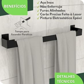 Porta Toalha Banho Suporte Banheiro Toalheiro Preto ELG Banheiros modernos exigem produtos de qualidade. Prezando pela sofisticação e elegância, desenvolvemos o Porta Toalha Banho Suporte Banheiro Toalheiro Elegance, onde cada traço foi cuidadosamente desenhado para deixar seu banheiro com um visual clean e sofisticado.
