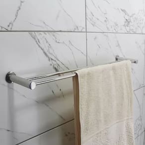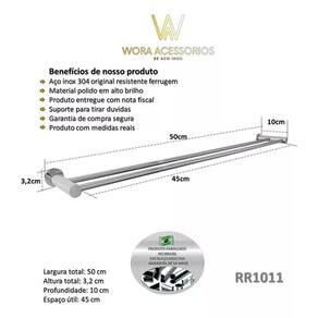 Porta Toalha Duplo para Banheiro 50cm Inox 304 - RR1011 Mais funcionalidade, mais estilo, o dobro de praticidade. O Porta Toalha Duplo RR1011 foi desenvolvido para quem valoriza organização, elegância e eficiência no dia a dia. Com seus 50 cm de comprimento e dois níveis de barras, ele permite acomodar duas toalhas ao mesmo tempo, sem ocupar espaço extra na parede. Ideal para banheiros modernos, lavabos ou suítes com uso frequente. Fabricado em aço inoxidável 304, é resistente à umidade e corrosão, além de contar com um acabamento polido em alto brilho que transforma até os pequenos detalhes da decoração.