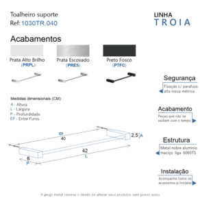 Além de decorar, organiza com funcionalidade o banheiro. Criado em metal nobre com uma qualidade que abrange áreas litorâneas e possui a garantia de um acabamento muito resistente.
