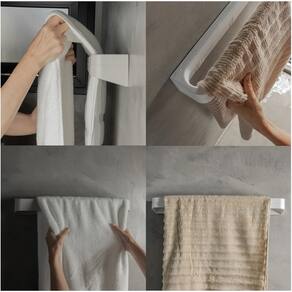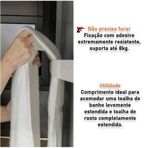 O toalheiro de parede Ou da Linha Eleve possui fixação com adesivo Ultra Click, super resistente, seguro, que dispensa furos e protege suas paredes. Com capacidade de até 8kg, ele é perfeito para acomodar toalhas de banho e rosto com segurança e funcionalidade. Seu design moderno e minimalista complementa a decoração do banheiro com sofisticação. Organização, estilo e praticidade.