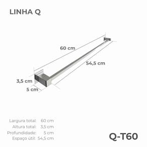 Porta Toalha Toalheiro Simples 60cm Aço Inox Polido Alto Brilho