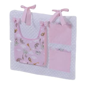Porta Treco e Fralda Organizador Quarto de Bebê Menino Menina 1 Peça Com Laço Cor: Safari rosa O porta fraldas é ideal pra ter sempre a mão os produtos mais no dia a dia com seu bebê. Nosso porta fralda/treco tem 2 bolsos menores, onde podem ser colocados produtos pequenos, e 1 bolso maior pra colocar as fraldas, roupas, toalhas ou itens maiores. Praticidade e decoração em um só produto. Sugestão de uso: Pendurado em varão ou no berço Contém na embalagem: 1 porta fraldas Medidas: 64cm larg x 54cm alt - 1 bolso 37cm alt x 27cm larg x 5cm prof - 2 bolsos 21cm alt x 18cm larg Composição: Matelado de microfibra 100% poliéster Tecido estampado e liso percal 180 fios 100% algodão - Foto ilustrativa, tonalidade da cor pode variar um pouco no produto real Produtos fabricados em Ibitinga-SP, a Capital Nacional do Bordado e do Enxoval.
