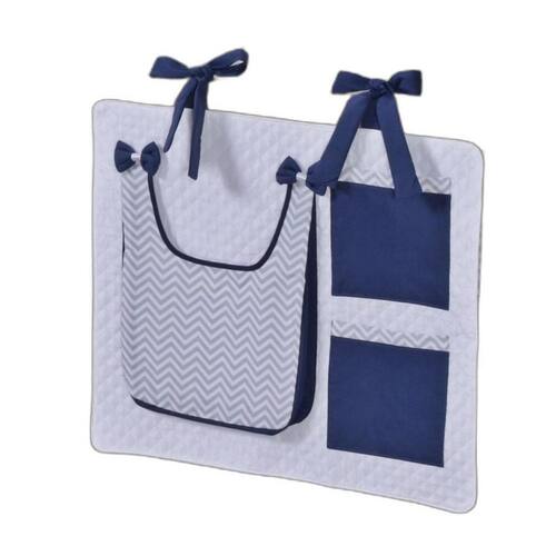 Porta Treco e Fralda Organizador Quarto de Bebê Menino Menina 1 Peça Com Laço Cor: Chevron azul marinho O porta fraldas é ideal pra ter sempre a mão os produtos mais no dia a dia com seu bebê. Nosso porta fralda/treco tem 2 bolsos menores, onde podem ser colocados produtos pequenos, e 1 bolso maior pra colocar as fraldas, roupas, toalhas ou itens maiores. Praticidade e decoração em um só produto. Sugestão de uso: Pendurado em varão ou no berço Contém na embalagem: 1 porta fraldas Medidas: 64cm larg x 54cm alt - 1 bolso 37cm alt x 27cm larg x 5cm prof - 2 bolsos 21cm alt x 18cm larg Composição: Matelado de microfibra 100% poliéster Tecido estampado e liso percal 180 fios 100% algodão - Foto ilustrativa, tonalidade da cor pode variar um pouco no produto real Produtos fabricados em Ibitinga-SP, a Capital Nacional do Bordado e do Enxoval. Marca: Não Informado Ean: 7793725566342