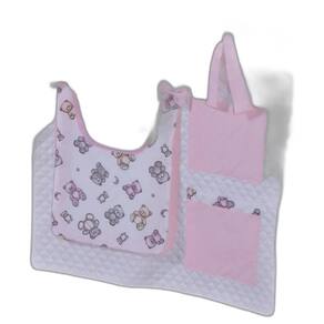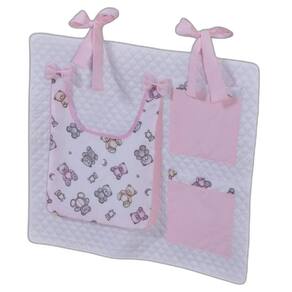Porta Treco e Fralda Organizador Quarto de Bebê Menino Menina 1 Peça Com Laço Cor: Urso rosa O porta fraldas é ideal pra ter sempre a mão os produtos mais no dia a dia com seu bebê. Nosso porta fralda/treco tem 2 bolsos menores, onde podem ser colocados produtos pequenos, e 1 bolso maior pra colocar as fraldas, roupas, toalhas ou itens maiores. Praticidade e decoração em um só produto. Sugestão de uso: Pendurado em varão ou no berço Contém na embalagem: 1 porta fraldas Medidas: 64cm larg x 54cm alt - 1 bolso 37cm alt x 27cm larg x 5cm prof - 2 bolsos 21cm alt x 18cm larg Composição: Matelado de microfibra 100% poliéster Tecido estampado e liso percal 180 fios 100% algodão - Foto ilustrativa, tonalidade da cor pode variar um pouco no produto real Produtos fabricados em Ibitinga-SP, a Capital Nacional do Bordado e do Enxoval. Marca: Não Informado Ean: 7793725576624