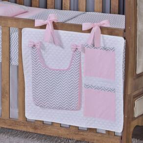 Porta Treco e Fralda Organizador Quarto de Bebê Menino Menina 1 Peça Com Laço Cor: Chevron rosa O porta fraldas é ideal pra ter sempre a mão os produtos mais no dia a dia com seu bebê. Nosso porta fralda/treco tem 2 bolsos menores, onde podem ser colocados produtos pequenos, e 1 bolso maior pra colocar as fraldas, roupas, toalhas ou itens maiores. Praticidade e decoração em um só produto. Sugestão de uso: Pendurado em varão ou no berço Contém na embalagem: 1 porta fraldas Medidas: 64cm larg x 54cm alt - 1 bolso 37cm alt x 27cm larg x 5cm prof - 2 bolsos 21cm alt x 18cm larg Composição: Matelado de microfibra 100% poliéster Tecido estampado e liso percal 180 fios 100% algodão - Foto ilustrativa, tonalidade da cor pode variar um pouco no produto real Produtos fabricados em Ibitinga-SP, a Capital Nacional do Bordado e do Enxoval. Marca: Não Informado Ean: 7793725566519