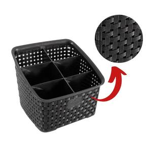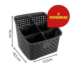 Porta treco organizador talher lápis caneta controle Rattan Como sempre a Numero1 antenada como vocêO Organizador com 6 divisórias também conhecido como Porta treco Nitron, traz para você que não aguenta mais tudo espalhado a praticidade de organização em um só lugar.Chega de desorganização, além de ser um Organizador ou Porta treco como conhecido, é prático e também um produto de qualidade diferenciada, fora a sua beleza... Esse modelo Rattan faz de seu ambiente um lugar aconchegante e estiloso.Esse produto não tem BPA (Livre de BPA - O BPA é uma substância química que faz mal à saúde) e por isso pode ser usado para Porta talheres também.A Numero1 é uma empresa familiar que preza pelos clientes acima de tudo.Agradecemos a preferencia e aguardamos sua compra. Seja bem vindo a Família Numero1 CARACTERÍSTICA DO PRODUTO: Marca: NitronCor: PretoMaterial: Plástico DIMENSÕES DO PRODUTO: Peso: 120 gLargura: 11 cmComprimento: 17,8 cmAltura: 16 cm