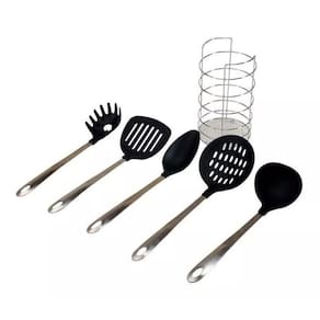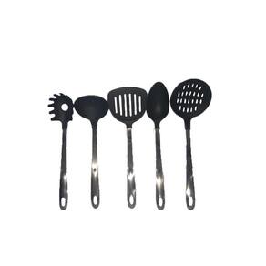 Kit Utensílios Cabo Inox, Preto 5 Peças Utensílios com suporte