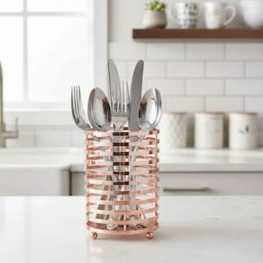 Além de funcional, o Porta Utensílios em Metal Cobre Rose Gold é uma peça decorativa que valoriza o espaço e mantém a cozinha sempre organizada com muito estilo.