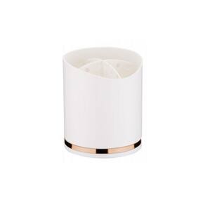 Porta Utensílios Em Plástico Eleganza 13x15cm Future Branco e Cromado - Características Gerais do Produto: • Dimensões: Ø 13x15cm • Material Principal: Plástico • Linha: Eleganza • Informações Adicionais: Limpar com pano úmido; Não utilizar materiais abrasivos como palha de aço; Não utilizar produtos químicos
