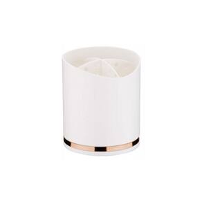 Porta Utensílios Em Plástico Eleganza 13x15cm Future Branco E Rose Gold Porta Utensílios Em Plástico Eleganza 13x15cm Future Branco e Rose Gold - Características Gerais do Produto: - Dimensões: 13x15cm - Material Principal: Plástico - Linha: Eleganza - Informações Adicionais: Limpar com pano úmido; Não utilizar materiais abrasivos como palha de aço; Não utilizar produtos químicos