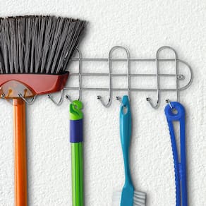 Porta Vassouras Cromado Arthi - Organize Sua Área de Serviço com Estilo! O Porta Vassouras Cromado da Arthi mantem sua lavanderia ou área de serviço organizada e com um toque de elegância! Este suporte não apenas organiza, mas também prolonga a vida útil de seus utensílios, mantendo as cerdas e esponjas fora do chão. Destaques e Benefícios: Organização Eficaz: O sistema com proteção nas pontas é prático, segurando firmemente cabos de diferentes espessuras sem danificá-los. Design e Durabilidade: Fabricado em Aço Cromado, oferece alta resistência, durabilidade e um acabamento brilhante que valoriza o ambiente. Otimização de Espaço: Instalação fácil na parede, liberando espaço no chão. Detalhes Técnicos: Marca: Arthi Material: Aço Cromado Código de Referência: 1015 Dimensões:Comprimento: 41 cm Largura: 6 cm Altura: 13,4 cm