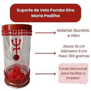 Suporte Para Vela 7 Dias 18 cm Pomba Gira Vermelha Vidro e Alumínio