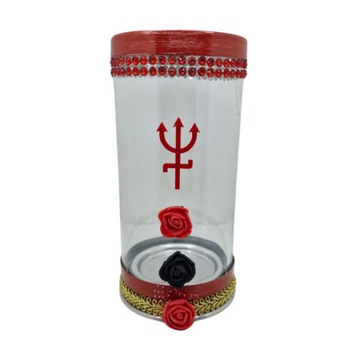 Descubra a beleza e a espiritualidade do Porta Vela 7 Dias Pomba Gira, uma peça única da marca Bialluz. Com um design cilíndrico e elegante, este porta vela de vidro e alumínio tem 18 cm de altura e 4 cm de diâmetro, ideal para criar um ambiente acolhedor e místico em sua casa. O modelo Pomba Gira é uma representação rica em simbolismo, perfeita para rituais de umbanda e candomblé.
