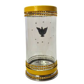 Porta Vela 7 Dias 18 cm Divino Espírito Santo Vidro e Alumínio