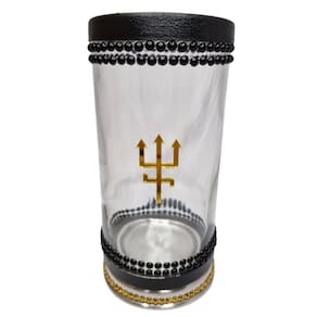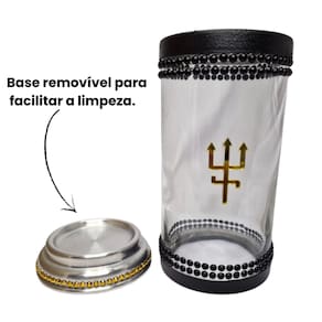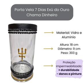 Porta Vela 7 Dias 18 cm Exu do Ouro Chama Dinheiro Vidro e Alumínio