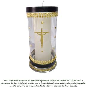 Porta Vela 7 Dias 18 cm Jesus Cristo Cruz Vidro e Alumínio