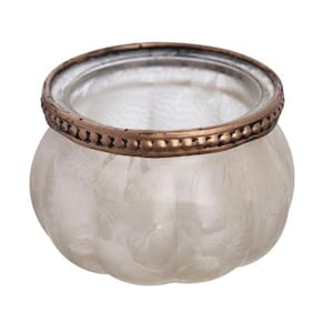 O Porta Vela Relicário Orion tem 8 cm e é produzido em vidro e metal, com acabamento que remete a madrepérola.