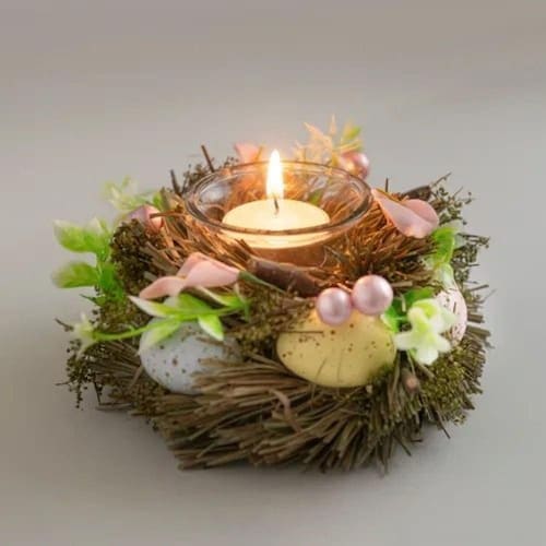 Porta Vela Pascoa 15 Cm Porta Vela Pascoa 15 Cm - Para que as velas encantem onde quer que seja colocada é preciso um porta-vela que acompanhe o estilo e que combine com a decoração e personalidade do local. É um detalhe muito importante o design do porta-velas, pois pode levar elegância, rusticidade e até descontração para o ambiente interno quanto externo. PALHA E VIDRO a vela não acompanha