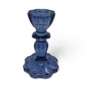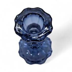 Porta Velas Castiçal Azul Transparente Vidro Rústico 11 cm