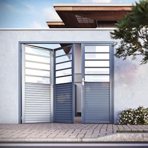 O portão de abertura pantográfico misto com travessa da Mecal é uma escolha elegante e versátil para quem busca personalização e qualidade. Este modelo vem com pintura de fundo, oferecendo uma base perfeita para transformá-lo na peça central do seu projeto.Uma das grandes vantagens é a liberdade de personalização que oferece. Você tem a oportunidade de pintá-lo na cor que melhor se adequa ao seu estilo e ambiente, além de poder escolher os vidros que mais combinam com a estética desejada. Isso possibilita a criação de um portão único, adaptado aos seus gostos e necessidades específicas. A porta social aberta sempre para o lado de dentro e esta posicionada ao lado direito de seu portão. É o modelo ideal para seu projeto. Lado de abertura: Direita Material do Batente: Aço Largura do Batente: 5 Acompanha Grade: Não Tipo de Porta: Abrir Acompanha Batedor: Não Acompanha Batente: Sim Acompanha Dobradiça: 03 Acompanha Fechadura: Sim Acompanha Guarnição: Não Acompanha Manual de Instalação: Sim Acompanha Trinco: Sim Altura: 215 Ambiente Principal: Cozinha Complexidade da instalação: Média: pode ser montado por mais de uma pessoa e/ou necessite de maior conhecimento para montagem Cor: Cinza Cor do Batente: cinza Cor do Produto: CINZA Cor Predominante: Cinza Elétrica: Não Imune à corrosão: Não Imune a cupim: Sim Indicações de Uso: Produto deve ser chumbado em muro de alvenaria com viga superior e lateral em concreto. Vide manual de instalação Informações Complementares: É necessário a construção de uma verga estrutural para reforço na parece superior do vão sobre o portão. É necessário colocar vidros. É necessário efetuar a pintura do produto. Itens Inclusos: 1 Portão, Manual de Instalação Largura: 245 Linha ou Coleção: Mecal Portões Manual de Montagem e Instalação: https://cdn2.madeiramadeira.com.br/atributo/mecal-portas-rs/1648139-manual-portOes.pdf Material da Dobradiça: Aço Material Principal: Aço Necessita Instalação: Sim Origem do Produto: Nacional Peso: 33.75 Possui friso: Não Possui Grade: Não Possui Vidro: Não Quantidade de Folhas: 03 Recomendações de Uso, Manutenção e Limpeza: É necessário colocar vidro e pintar o produto;a limpeza deve ser realizada com agua e sabão; Resistência à Água: Sim Resistência à Maresia: Não Resistência a umidade: Sim Tamanho: 215x245x5 Textura da Porta: Veneziana Tipo de Batente: Fixo Tipo de Dobradiça: Simples Vidro incluso: Não