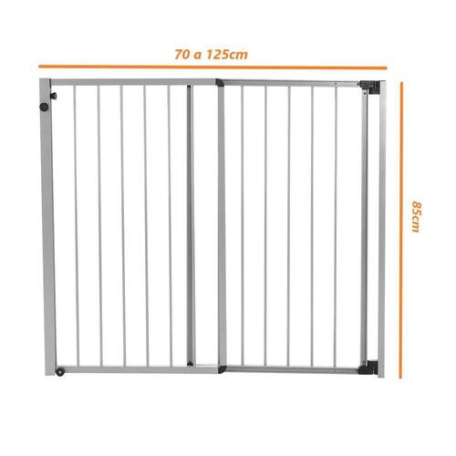 O portão de correr reall é a solução ideal para a proteção das crianças e de seus pets. Você pode usar de diversas maneiras: para dividir os ambientes, deixando seu pet em um cantinho só dele e evitando sujeira em outros cômodos; protegendo seu bebê de escadarias ou locais perigosos.O portão de correr reall é fabricado em duro alumínio, material prático e resistente. Sua pintura epóxi aumenta a resistência ao clima e aos animais, podendo ser lavado. Ele é ideal para uso na cidade, praia ou campoPossui 85 cm de altura e largura regulável, variando de 70 cm até 125 cm sem precisar de extensor além disso, o portão de correr reall articula 180º, ou seja, abre tanto para dentro como para fora. E o melhor: o vão é livre diferente de outros produtos no mercado, que possuem uma barra na parte inferior, o portão de correr reall tem um design exclusivo, garantindo maior segurança para sua família pois não há risco de tropeçar.Conta também com uma trava de segurança, impedindo sua abertura por bebês e pequenos pets.Agora é só você escolher a cor que mais combina com seu ambiente branca, cinza, preta ou fume e desfrutar da proteção de um produto fabricado e montado no brasilCaracterísticas gerais:- fabricado em duro alumínio;- pintura com tinta epóxi nas cores branca, cinza, preta ou fumê;- altura de 85 cm com largura regulável entre 70 a 125cm;- abre para dentro e para fora, em um ângulo de 180º;- não possui barra inferior;- trava de segurança;- fácil instalação;- acompanha parafusos e buchas;- possui rodinhas em sua base;- pode ser instalado em área externa;- lavável;- não enferruja;- peso 2,650kg;- distancia entre as hastes de 4 cm.Conteúdo:- 1 portão de correr reall;- 4 buchas e- 4 parafusos.- kit com espaçadores para instalar em locais com rodapé.- conheça nossa linha completa de portões- altura:- 85cm- 100cm- 125cm- largura:- de 58 a 100cm- de 70 a 125cm- de 85 a 150cm- de 105 a 200cm- de 130 a 250cm- de 150 a 300cm Marca: Compre Reall