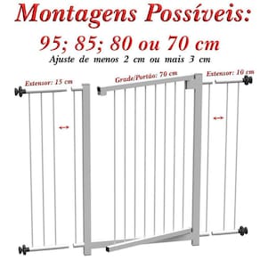Composição do Produto: - 1 Grade Portão de 68 cm - 1 Extensor de 15 cm - 1 Extensor de 10 cm - 4 conjunto de parafusos + manípulos + buchas para fixação