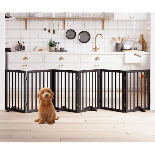 - Os portões para cães internos, sistema dobrável de dupla face, permitindo dobrar a forma I/U/Z, mantendo uma aparência moderna, certamente complementarão qualquer decoração