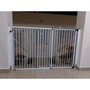 Possui 85 cm de altura e largura regulável, variando de 105 cm até 200 cm sem precisar de extensor além disso, o portão de correr reall articula 180º, ou seja, abre tanto para dentro como para fora. E o melhor: o vão é livre diferente de outros produtos no mercado, que possuem uma barra na parte inferior, o portão de correr reall tem um design exclusivo, garantindo maior segurança para sua família pois não há risco de tropeçar.