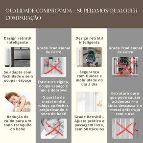 Portão Retrátil Sem Perfuração Para Bebês E Pets Segurança Cor: Preto Garanta a segurança dos pequenos e dos pets com a nossa Grade Retrátil Inteligente, desenvolvida para proporcionar proteção, praticidade e design moderno em um único produto. Ideal para portas, corredores e escadas, ela conta com estrutura leve, retrátil e silenciosa - perfeita para o dia a dia. Principais Benefícios: Medidas ajustáveis: 86 cm de altura até 140 cm de largura. Trava dupla de segurança: Impede o acesso de crianças e permite fácil abertura por adultos. Silenciosa: Evita ruídos ao fechar, protegendo o sono do bebê. Rotação 180: Pode ser aberta para ambos os lados. Instalação versátil: Com ou sem perfuração inclui kit adesivo . Ajuste de altura: Ideal para ambientes com rodapé. Material seguro: Tela em ABS ecológico, sem odor e atóxica. Eixo de metal tensionado: Alta durabilidade e resistência. Acompanha: 2 Suportes Superiores + 2 Suportes Inferiores 4 Âncoras + Pinos completos 8 Adesivos Tipo A e B 1 Kit de Instalação Adesiva Disponível nas cores: Branco Cinza Preto do vendedor: 3 meses
