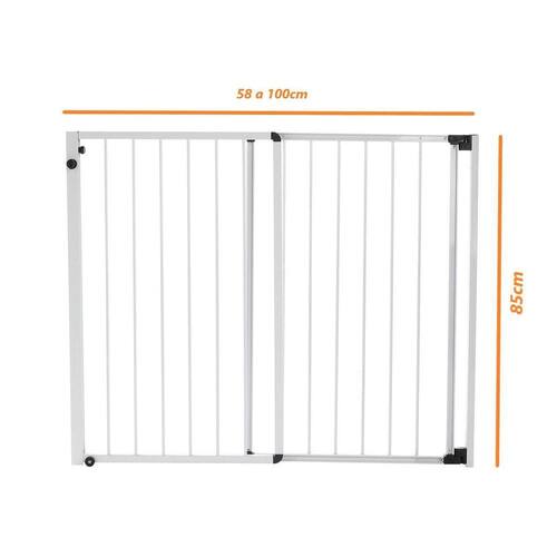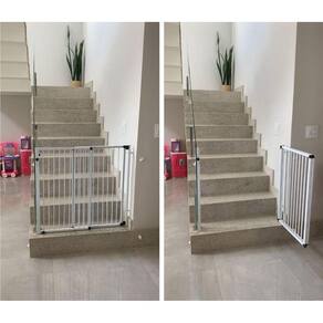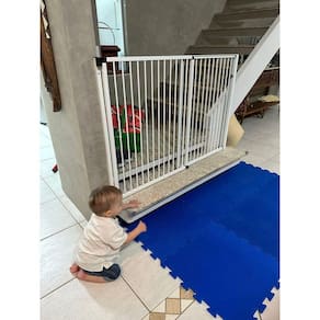 Possui 85 cm de altura e largura regulável, variando de 70 cm até 125 cm sem precisar de extensor além disso, o portão de correr reall articula 180º, ou seja, abre tanto para dentro como para fora. E o melhor: o vão é livre diferente de outros produtos no mercado, que possuem uma barra na parte inferior, o portão de correr reall tem um design exclusivo, garantindo maior segurança para sua família pois não há risco de tropeçar.