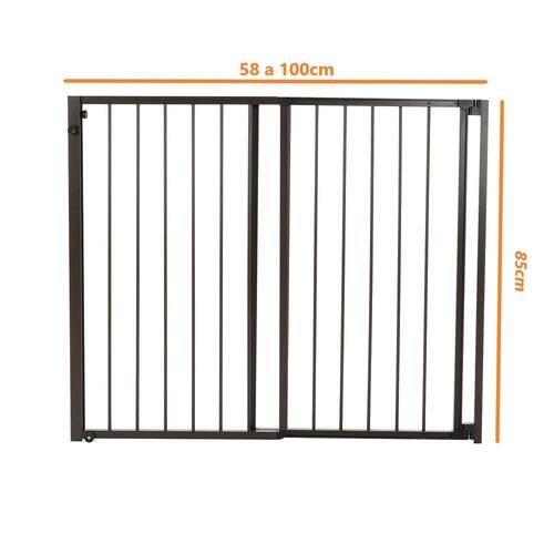 O portão de correr reall é a solução ideal para a proteção das crianças e de seus pets. Você pode usar de diversas maneiras: para dividir os ambientes, deixando seu pet em um cantinho só dele e evitando sujeira em outros cômodos; protegendo seu bebê de escadarias ou locais perigosos.O portão de correr reall é fabricado em duro alumínio, material prático e resistente. Sua pintura epóxi aumenta a resistência ao clima e aos animais, podendo ser lavado. Ele é ideal para uso na cidade, praia ou campoPossui 85 cm de altura e largura regulável, variando de 58 cm até 100 cm sem precisar de extensor além disso, o portão de correr reall articula 180º, ou seja, abre tanto para dentro como para fora. E o melhor: o vão é livre diferente de outros produtos no mercado, que possuem uma barra na parte inferior, o portão de correr reall tem um design exclusivo, garantindo maior segurança para sua família pois não há risco de tropeçar.Conta também com uma trava de segurança, impedindo sua abertura por bebês e pequenos pets.Agora é só você escolher a cor que mais combina com seu ambiente branca, cinza, preta ou fume e desfrutar da proteção de um produto fabricado e montado no brasilCaracterísticas gerais:- fabricado em duro alumínio;- pintura com tinta epóxi nas cores branca, cinza, preta ou fumê;- altura de 85 cm com largura regulável entre 58 a 100cm;- abre para dentro e para fora, em um ângulo de 180º;- não possui barra inferior;- trava de segurança;- fácil instalação;- acompanha parafusos e buchas;- possui rodinhas em sua base;- pode ser instalado em área externa;- lavável;- não enferruja;- peso 2,650kg;- distancia entre as hastes de 4 cm.Conteúdo:- 1 portão de correr reall;- 4 buchas e- 4 parafusos.- kit com espaçadores para instalar em locais com rodapé.- conheça nossa linha completa de portões- altura:- 85cm- 100cm- 125cm- largura:- de 58 a 100cm- de 70 a 125cm- de 85 a 150cm- de 105 a 200cm- de 130 a 250cm- de 150 a 300cm Marca: Compre Reall