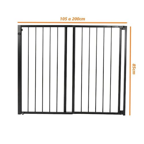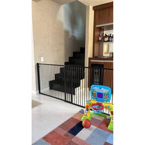 Possui 85 cm de altura e largura regulável, variando de 105 cm até 200 cm sem precisar de extensor além disso, o portão de correr reall articula 180º, ou seja, abre tanto para dentro como para fora. E o melhor: o vão é livre diferente de outros produtos no mercado, que possuem uma barra na parte inferior, o portão de correr reall tem um design exclusivo, garantindo maior segurança para sua família pois não há risco de tropeçar.