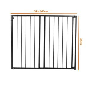 Possui 85 cm de altura e largura regulável, variando de 58 cm até 100 cm sem precisar de extensor além disso, o portão de correr reall articula 180º, ou seja, abre tanto para dentro como para fora. E o melhor: o vão é livre diferente de outros produtos no mercado, que possuem uma barra na parte inferior, o portão de correr reall tem um design exclusivo, garantindo maior segurança para sua família pois não há risco de tropeçar.