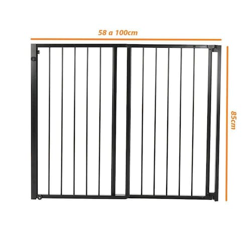 Possui 85 cm de altura e largura regulável, variando de 58 cm até 100 cm sem precisar de extensor além disso, o portão de correr reall articula 180º, ou seja, abre tanto para dentro como para fora. E o melhor: o vão é livre diferente de outros produtos no mercado, que possuem uma barra na parte inferior, o portão de correr reall tem um design exclusivo, garantindo maior segurança para sua família pois não há risco de tropeçar.