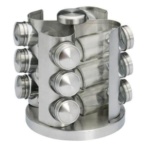 Portatemperos da Casa Ambiente composto por 12 potes fabricados em vidro resistente e tampas em aço inox de alta qualidade. Acompanha suporte giratório também produzido em aço inox, garantia de mais praticidade e segurança durante o manuseio. Possui design moderno e acabamento fosco, composição cheia de estilo para integrar a decoração de sua cozinha. Escolha certa para levar mais funcionalidade ao seu dia a dia e te auxiliar no preparo de receitas deliciosas Pode armazenar sal, pimentas, ervas finas, curry e mais uma variedade de temperos moídos. Composição 12 Potes de vidro Altura 9.5 cm Diâmetro 4.3 cm 01 Suporte Altura 20 cm Diâmetro 18 cm