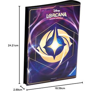 Portfólio oficial Disney Lorcana: Design exclusivo com a icônica Rainha Má da Disney.Alta capacidade de armazenamento: Organiza e protege até 64 cartas padrão e 8 cartas oversized.Proteção premium Ravensburger: Materiais duráveis que preservam suas cartas contra desgaste e danos.
