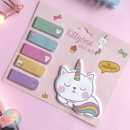 Post-it Bloco Anotações Papelaria Fofa Gatinho Unicórnio