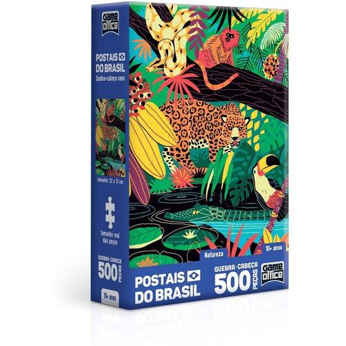 Quebra-cabeça nano de 500 peças com os Postais da Brasil. Estão reunidas neste quebra-cabeça algumas representações culturais dos principais animais da natureza brasileira. Temos um padrão internacional de qualidade e encaixe suave que pode ser sentido em cada peça. Se divirta montando e admirando uma bela paisagem de origem brasileira. Imagens meramente ilustrativas.