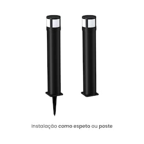 Especificações Gerais do Produto: Dimensões AxLxP (mm): 650x106x106 Material: Plástico Garantia: 90 dias junto ao fabricante Nome complemento: Possibilita instalação como poste ou espeto Local de Uso: Externo Grau de Proteção: IP65 Potência: 8W Grau de Abertura: 270° Fluxo Luminoso: 560 lúmens Observação: Possibilita instalação como poste ou espeto Vida Útil: 15.000 horas