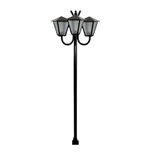 Poste Braço Curvo Luminária Romana Tripla Jardim Preto 200cm