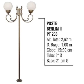 Poste Colonial Berlim 2 Para Jardim Alumínio 02 Globo 2,62m
