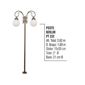 Poste Colonial Berlim Para Jardim Alumínio 02 Globo 2,62m