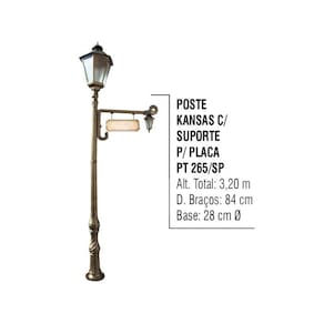 01 Poste Colonial Kansas Para Jardim Alumínio C. S. Placa 3,20m
