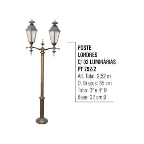01 Poste Colonial Londres Jardim Alumínio 02 Luminárias 2,52m