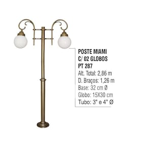 Poste Colonial Miami Para Jardim de Alumínio 02 Globos 2,86m