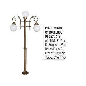 01 Poste Colonial Miami Para Jardim de Alumínio 03 Globos 3,07m
