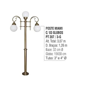 01 Poste Colonial Miami Para Jardim de Alumínio 03 Globos 3,07m