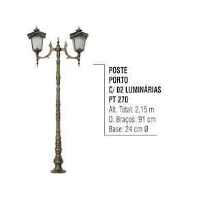 Poste Colonial Porto para Jardim Alumínio 02 Luminária 2,15m